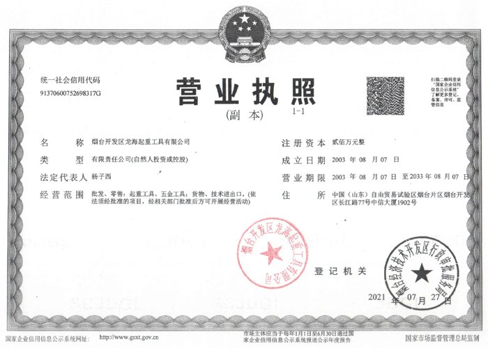 本網站為煙臺開發區龍海起重工具有限公司正規網站,請放心點擊瀏覽